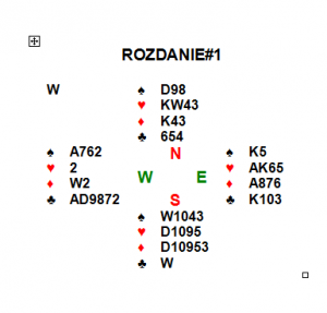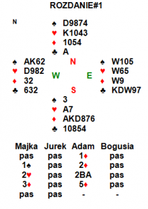 Irenka zastanawiała się nad pierwszą odzywką, zdecydowała się na otwarcie 1