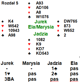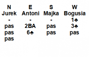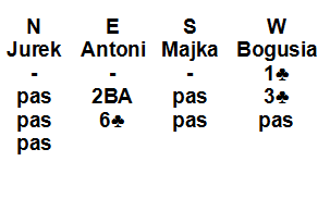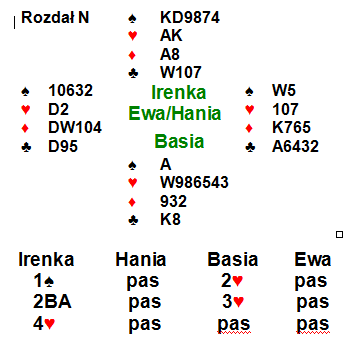 od Basi trzeba było sforsować licytację i Irenka zdecydowała się na 2BA, od Basi 3